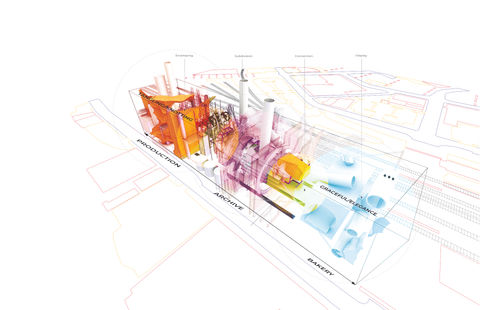 Memoressitas, as a mixed use flour production, archive, housing, and bakery space is located on the site of the Jackson Avenue parking lot in Knoxville, TN. This hybrid semester, being online one week and in person the next, included a workflow moving between digital and analog, and developing abstract concepts into architectural ideas like character and program. The intention of the studio’s work is to view architecture as a structure of understanding as it must reconcile, negotiate, and in some cases, embrace conflicts. Within this structure, we used a unique process by passing each drawing and idea through every person of the team one at a time, inviting sometimes differing opinions to clash yet ensuring everyone’s main ideas were incorporated. Often having to defend one’s idea and generate new defenses for its inclusion brought an energetic engagement in conversations around the project. This specific program is influenced by the historical fabric of Knoxville which was driven by industry and production. The rapid movement occurring around the site, alongside the location in the historic landscape of Knoxville prompted a reaction to these factors in the architecture. The Gay Street bridge, adjacent to the northeast side of the building, serves as a major connector between its main thoroughfare in Downtown Knoxville and furthers the path to Old City serving cars and pedestrians. Running underneath this bridge are train tracks, with the Knoxville and Holston River Railroad Depot being on the opposite side of bridge. Historically, there was a flour factory in the Warehouse District so our project reimagines this typology as a singular line of production, live/work community, and spectacle. This project involved collaboration with Zach Orig, Rachel Parks, and Niklos Toldi.